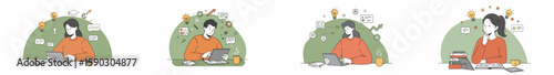 Set of people using credit card, modern digital devices for online payment, shopping on internet, making wireless financial transfer through mobile banking application vector illustration