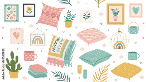 Sewing and needlework hand craft hobby or small business scene set. Young woman creating custom clothing working at design studio workshop, personal stylist accessories vector illustration