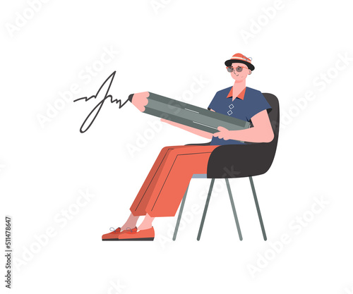 Seamstress designer creating sewing clothing pattern using scissors, vector flat illustration isolated on white background. Atelier, garment factory, clothing workshop, sewing studio.