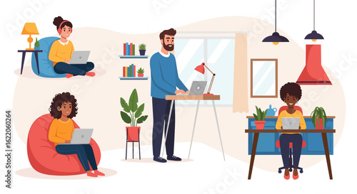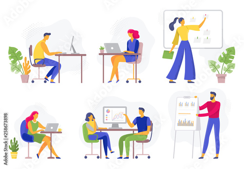 Sewing set, vector isolated illustration. Seamstress, clothing designer, dressmaker, customer cartoon characters and tailor tools. Atelier, sewing courses, tailoring shop or fashion salon.