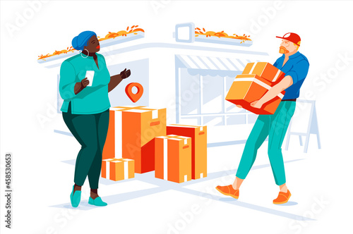 Shoemakers repairing woman boots, vector illustration. Shoe repair shop services concept for web banner, website page etc.