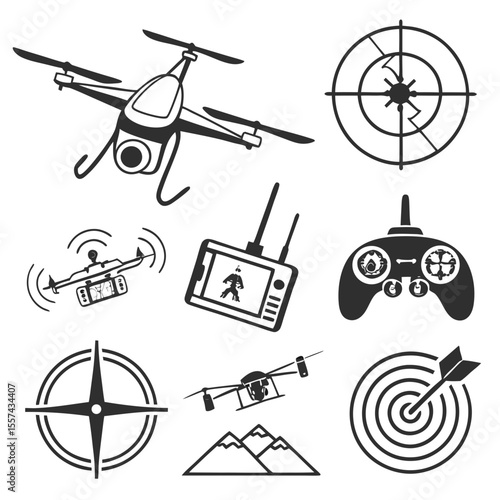 Shooting and archery club logo, label, emblem set, flat vector isolated illustration. Shooting club badges.