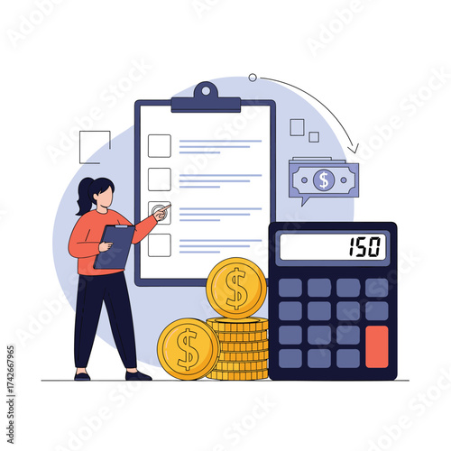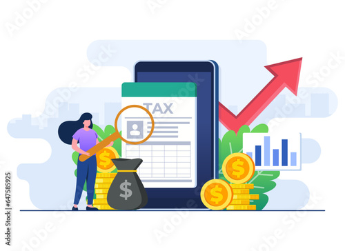 Shopping price rising and inflation change vector illustration. Commodity cost increasing, retail basket value growth bacgkround with shocked customer reading bill
