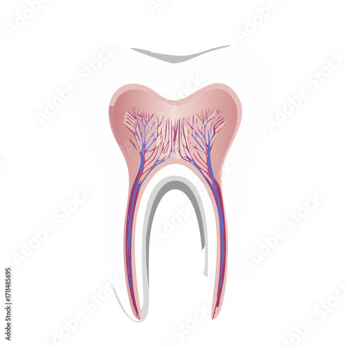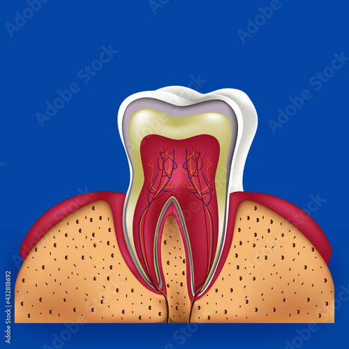 Sick destroyed tooth dental anatomy vector icon isolated on white background