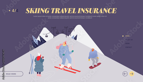 Skate park vector website template, landing page design for website and mobile site development. Happy teens boys and girl skateboarders riding skateboards, learning to skate on ramp in city park.