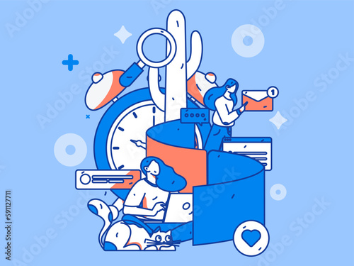 Skateboarding vector flat style design illustration. Skateboard and wheels to it, cap, sneaker shoe, audio player, headphones. Skate board and skateboarder outfit for web banner, website page etc.