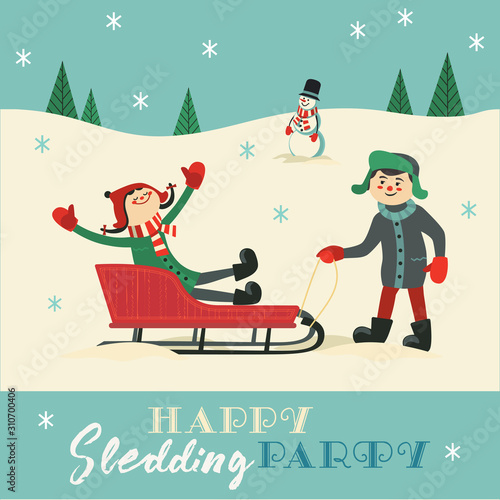 Vector illustration of ski teacher young man training girl. Private lesson. Ski instructor flat style design element.