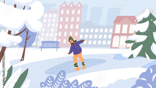 Ski resort landing page design, website banner template set, flat vector illustration. Happy people enjoying skiing, ice skating. Outdoor winter activities. Sport and leisure in winter.