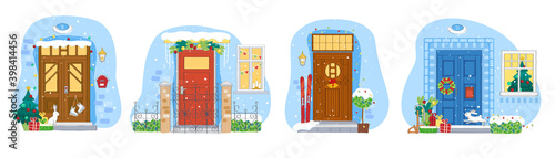 Ski resort vector illustration. Mountain cafe, wooden barrel vat. Winter fun concept flat style design element.
