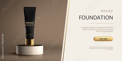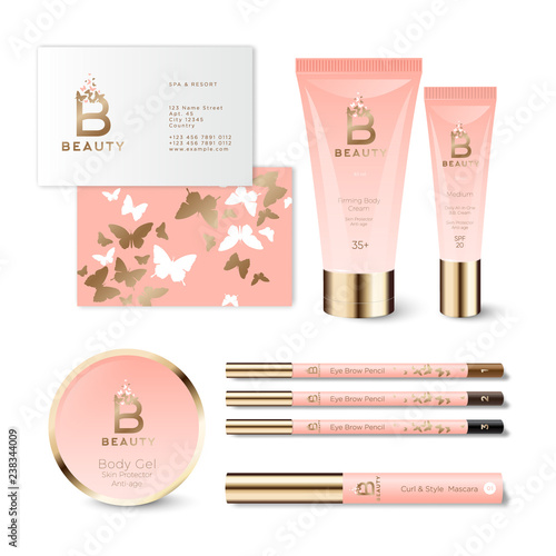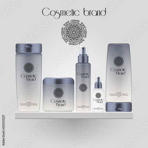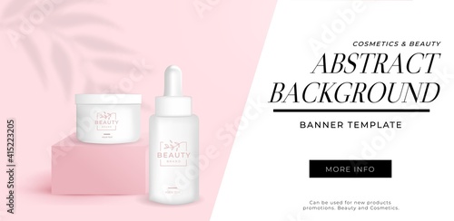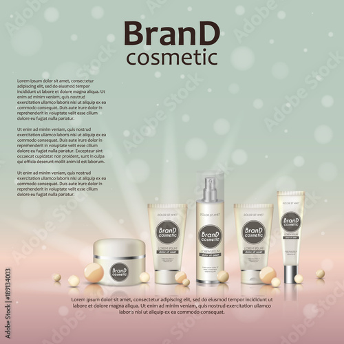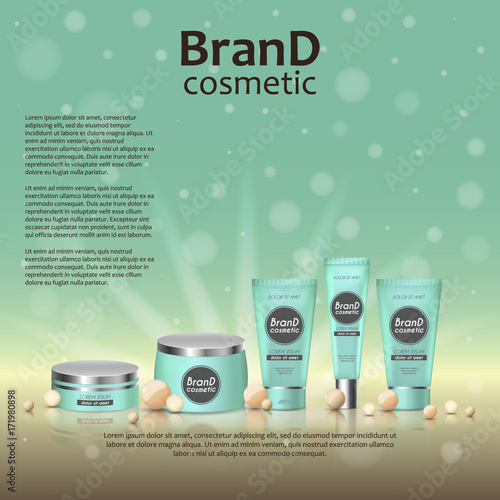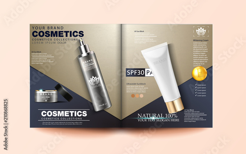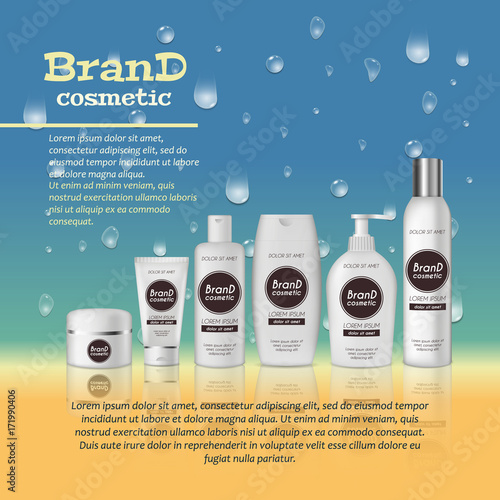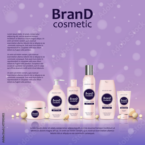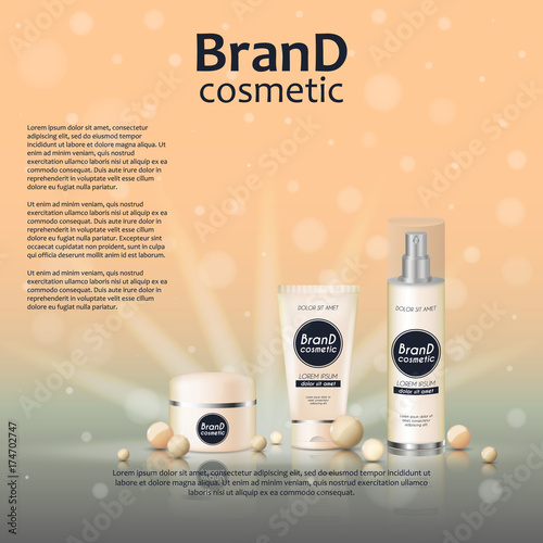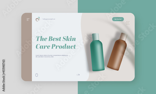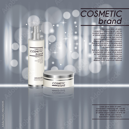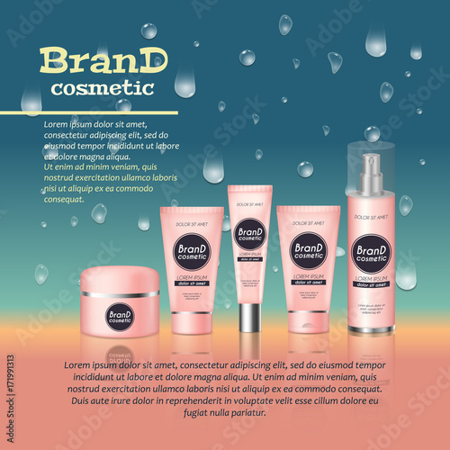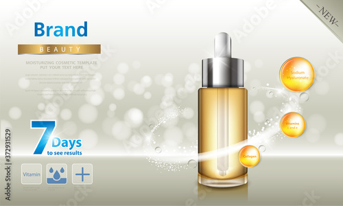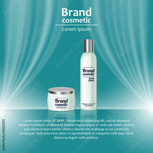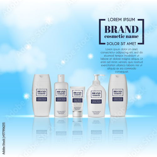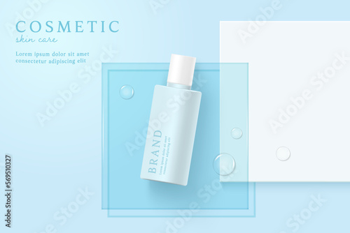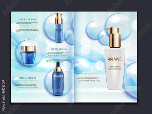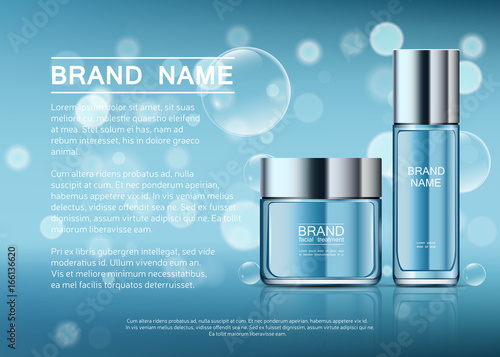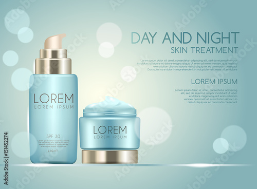 Skin toner cosmetic products ad. Vector 3d illustration. Skin cream bottle template design.