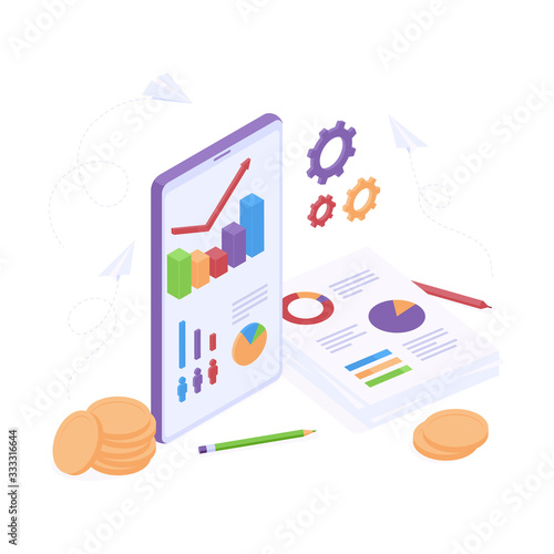 Smart farming industry concept flat vector isometric illustration. Remote control organic greenhouse. Internet of things, artificial intelligence technologies in agriculture.