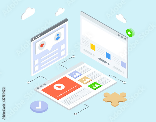 Smart home landing page website template. Vector isometric house with household appliances, security camera other smart devices. Internet of things, home automation concept.