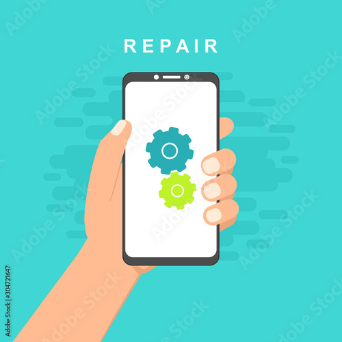 Smart phone sport app with icons. Fitness mobile application concept. Vector illustration in flat style design.