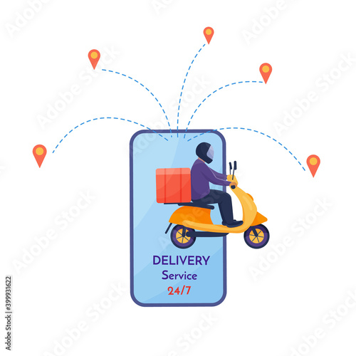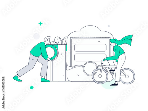 Smart wheeled robot assistant helping with package delivery vector flat icon isolated on white background. Futuristic service, AI robotic technology concept