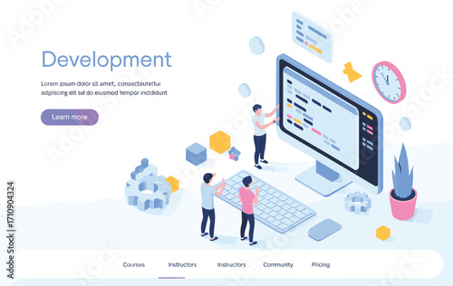 Smartwatch landing page website template. Vector illustration of smartphone and smart watch showing the same time. Smart digital device concept, mobile phone and smartwatch synchronization.