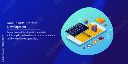 Smart watch technology with sport fitness tracker advertising vector poster, website banner realistic design. Woman running and using fitness tracking app to monitor workout and health indicator