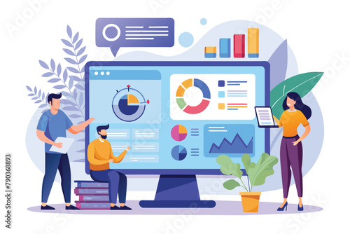 Mobile security, fingerprint on screen, characters with key, lock, vector illustration. Biometric access scanning technology, fingerprint identification.
