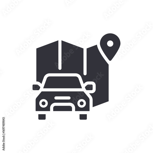Big smartphone screen with city map, route, car and location pin, flat vector illustration. Online car sharing, car rental services.