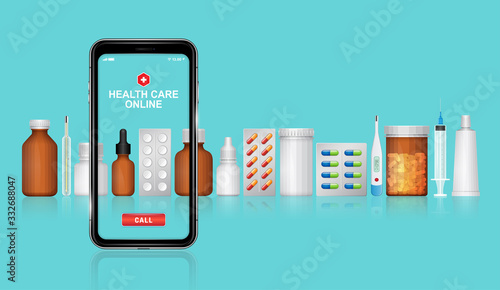 Smartphone surrounded by social media and digital communication symbols. 3d render vector illustration. Mobile phone render, business app, 3d mockup.