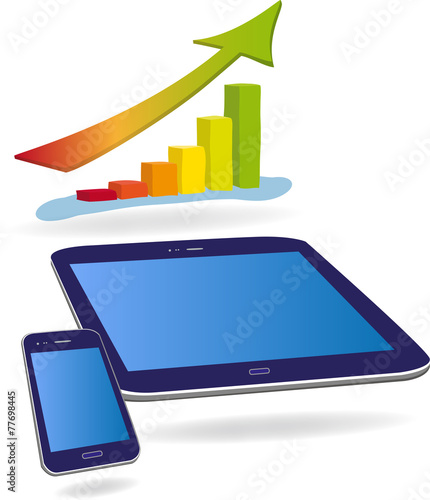 Smartphone with financial bar chart. Business and finance concept vector illustration in isometric style.