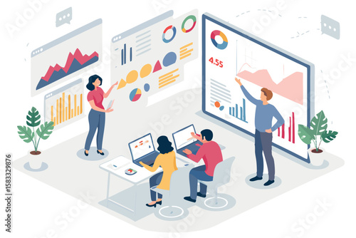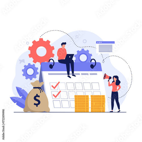 Smartphone with time planning app, flat vector isometric illustration. Online schedule. Organizing, planning controlling of working time, business strategy.