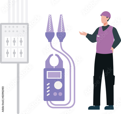 Snowboarding equipment and gear, vector illustration. Snowboarder male cartoon character preparing to go snowboarding, choosing snowboard bindings.