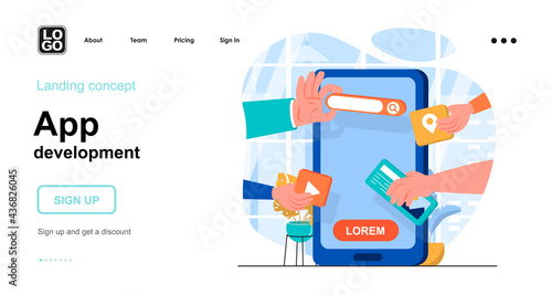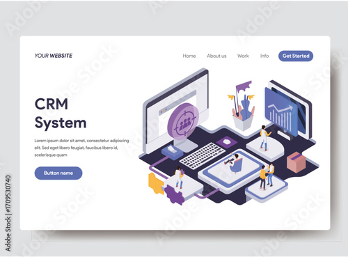 Social media automation vector website template, web page and landing page design for website and mobile site development. Marketing automation concept.