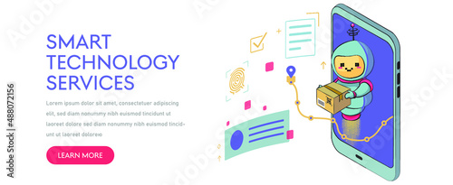 Social media marketing landing page website template. Vector isometric illustration. Smm strategy concept for digital marketing, social campaign.