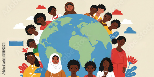 Social media network people community flat cartoon vector illustration. Online connection and communication. Man and woman from different country connected together