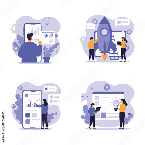 Software developers, engineers coding, programming, flat vector isolated illustration. Computer program, software development and web programming.