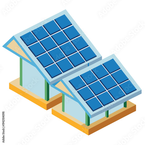 Solar house panel roof mounted isometric vector. Home building with energy power photovoltaic cell for electricity generation 3d icon isolated on white background