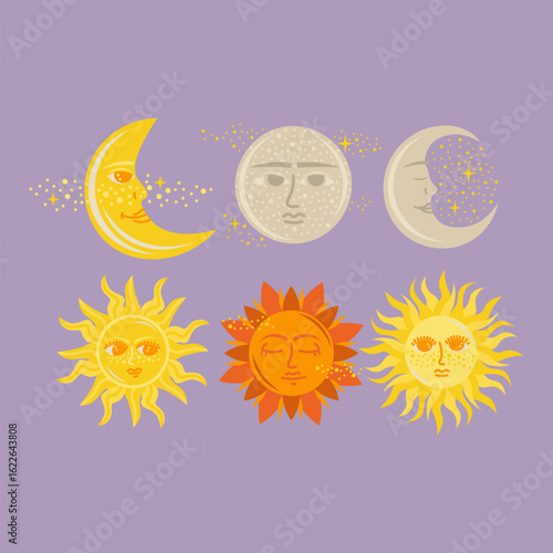 Layered paper cut style fantastic Sun, Earth solar system planet and Moon its satellite, vector illustration isolated on white background. Astronomy for kids.