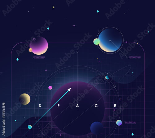 Solar system planets with moons vector education diagram. Space exploration and astronomy science poster template.