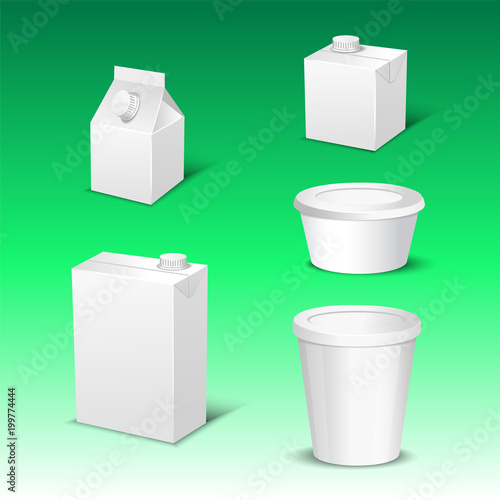 Natural pure vegan supplement organic soy protein package mockup set. Vector realistic illustration. White blank carton box, plastic jar, doypack, stand up flexible pouch sachet bag with hang slot.