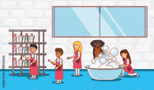 Vector illustration of young people enjoying jacuzzi. Hot tub spa services concept design elements in flat style.