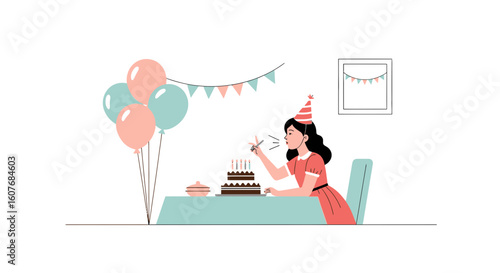 Vector illustration of young woman enjoying aroma bath procedures. Spa people flat style design element, icon isolated on white background.