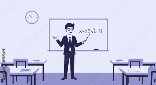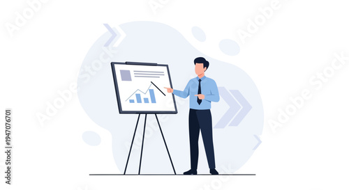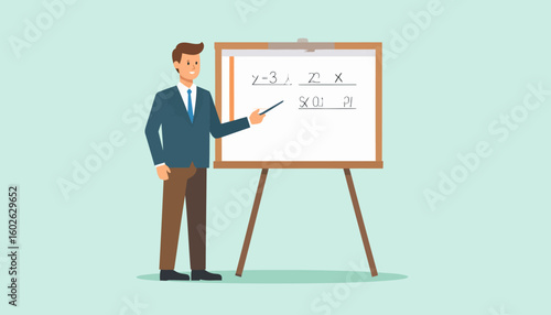 Vector illustration of scientist, design engineer giving presentation or lecture. Space exploration, development of aerospace technology, space science education concept. Flat style design.