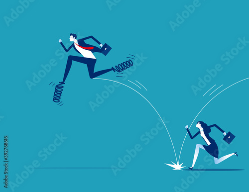 Astronaut training concept vector illustration. Astronaut practicing extravehicular activities or space walks. Space people flat style design element, icon isolated on white background.