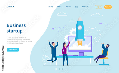 Space vector website template, web page and landing page design for website and mobile site development. Space exploration technology, aerospace industry concept.