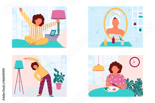 Special appearance, skin problem people. Landing page design, website banner template set, flat vector illustration. Fat woman and man with psoriasis, eczema looking in the mirror.