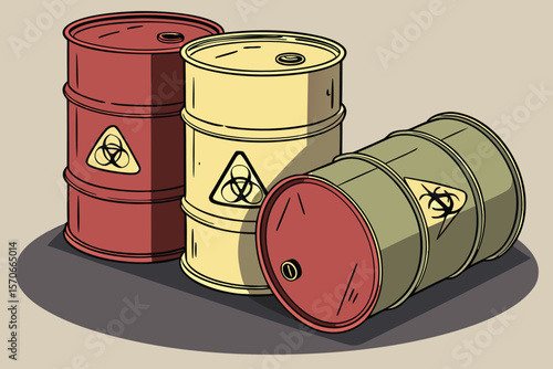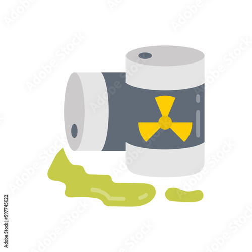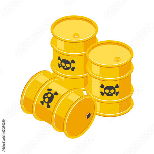 Spill chemical accident vector. Isometric barrel with danger radioactive waste. Industrial toxic material leak isolated on white background. Risk of environment contamination, pollution and ecology hazard