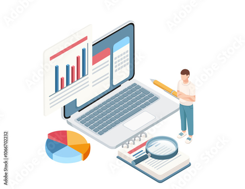 Split testing vector isometric illustration. A - B comparison, multivariate testing to improve website concept for for web banner, webpage etc.