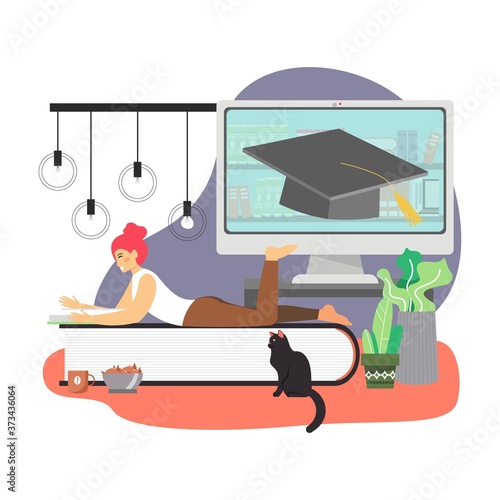 Sport and fitness activities. Young woman doing pilates exercises, flat vector illustration. Fitness pilates workout. Active and healthy lifestyle.