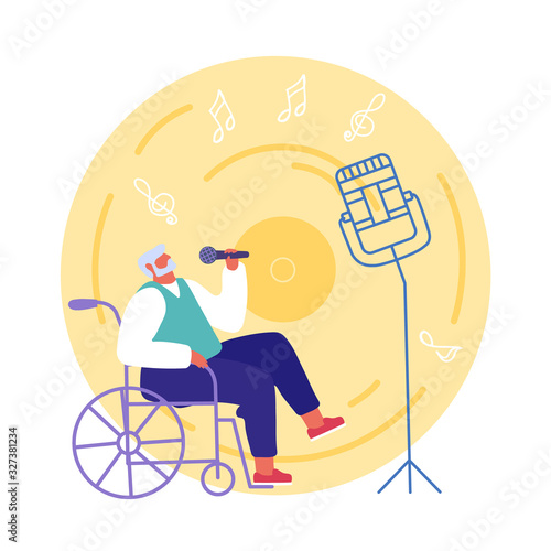 Disabled athletes in wheelchair with leg prosthesis taking part in sport competitions, vector illustration. Sport games concept for web banner, website page etc.