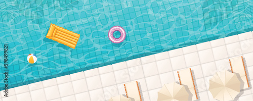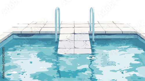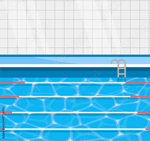 Sport professional swimming pool with lanes. People swim in public swimming pool vector illustration set. Man and woman swim in water. Fitness center interior.