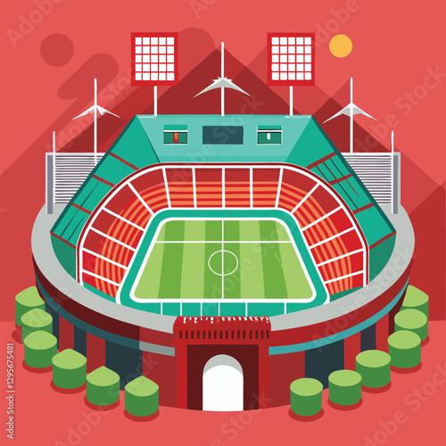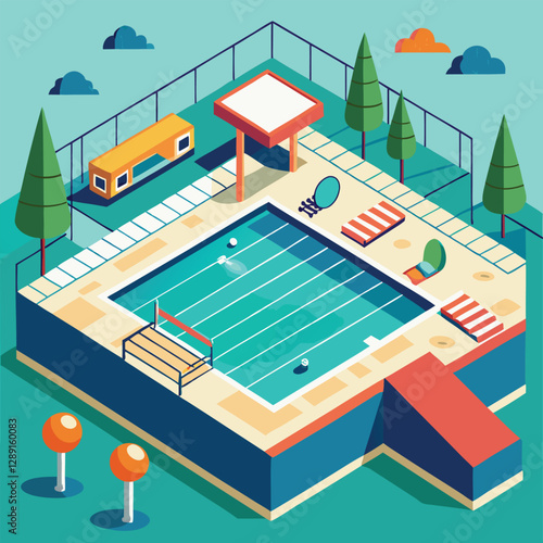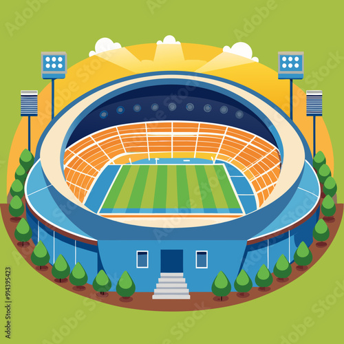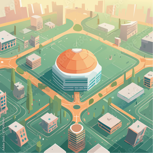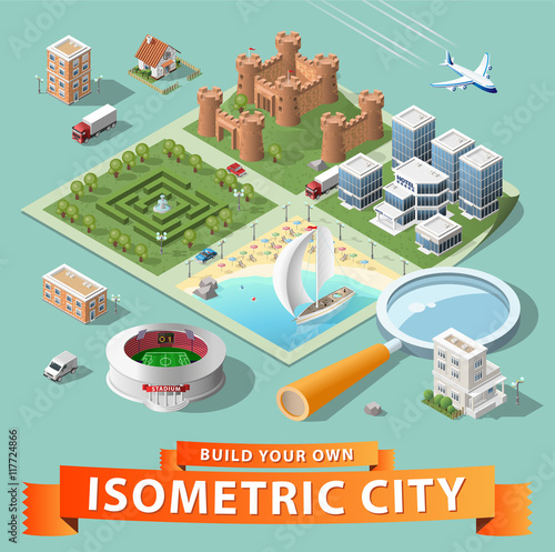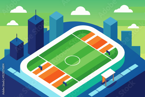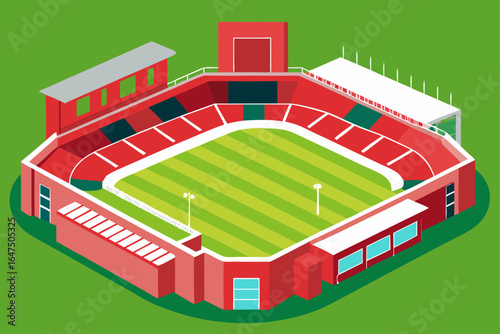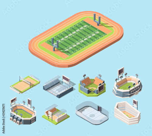 Sport stadium vector isometric icon set. Roller park, Mix boxing, Cricket and Athletics concept design elements. Outdoor sports venues for championships, training, matches etc.