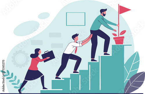 Huge athletic shoe and tiny people doing sports, vector illustration. Sport sneaker shoes for gym training, workout, running etc.