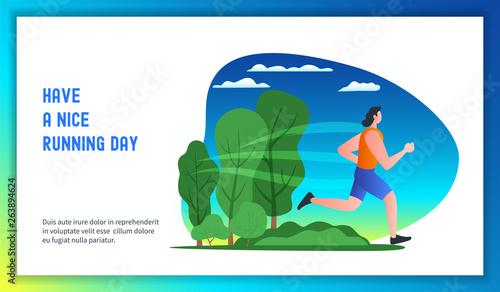 Sports prosthetic landing page website template. Vector illustration of handicap runners man and woman running on artificial sports feet blades. Paralympic athletes with prostheses.