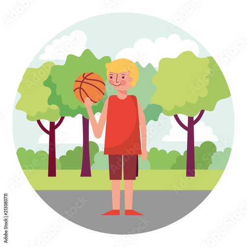 Vector illustration of school team boy walking in the street. Sportsman concept design element in flat style.