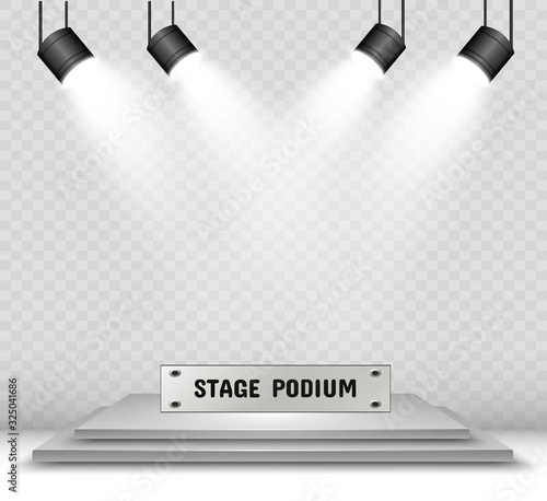 Shelf with spotlights, vector realistic illustration. Home lighting, ceiling light with six spot lights concept.